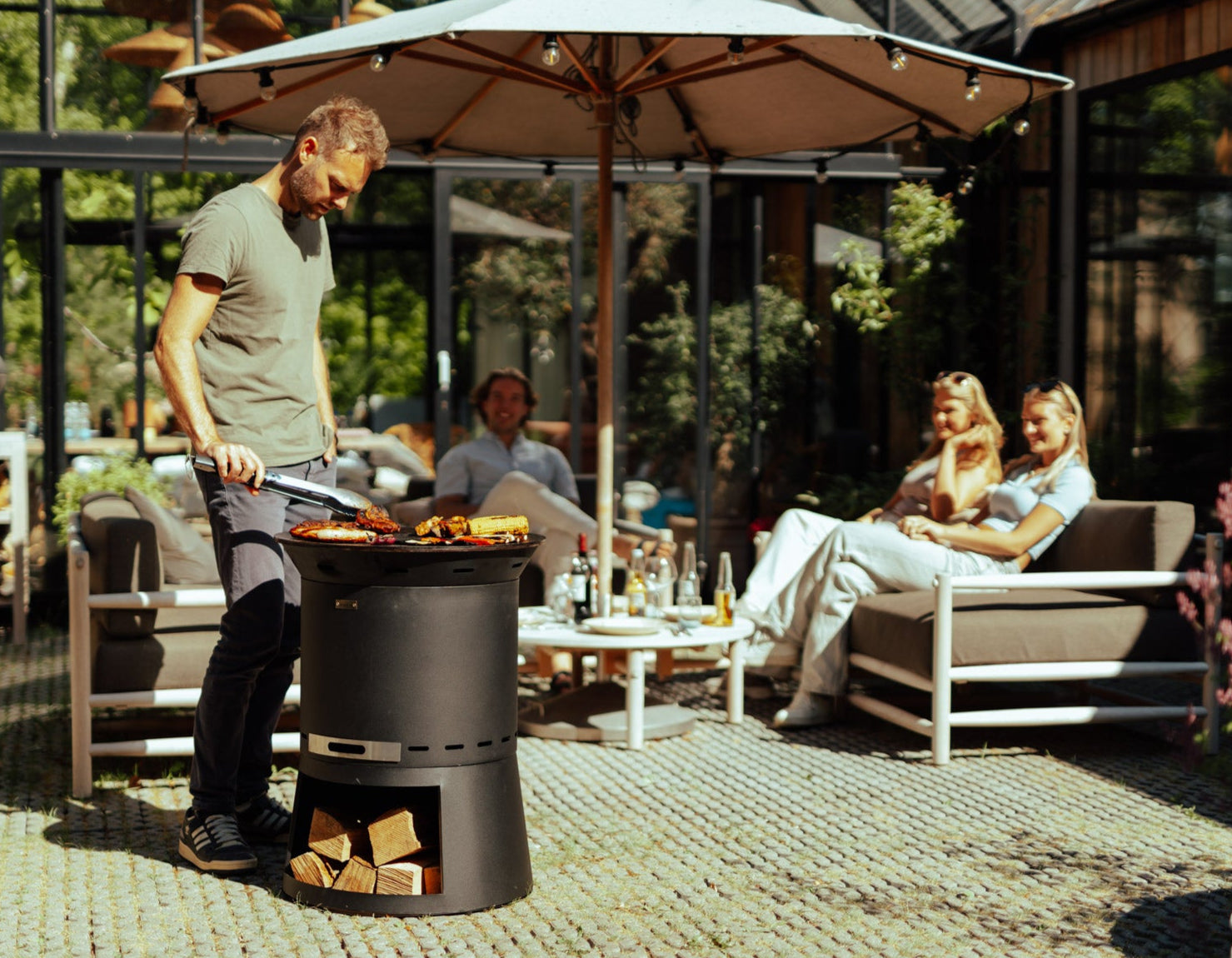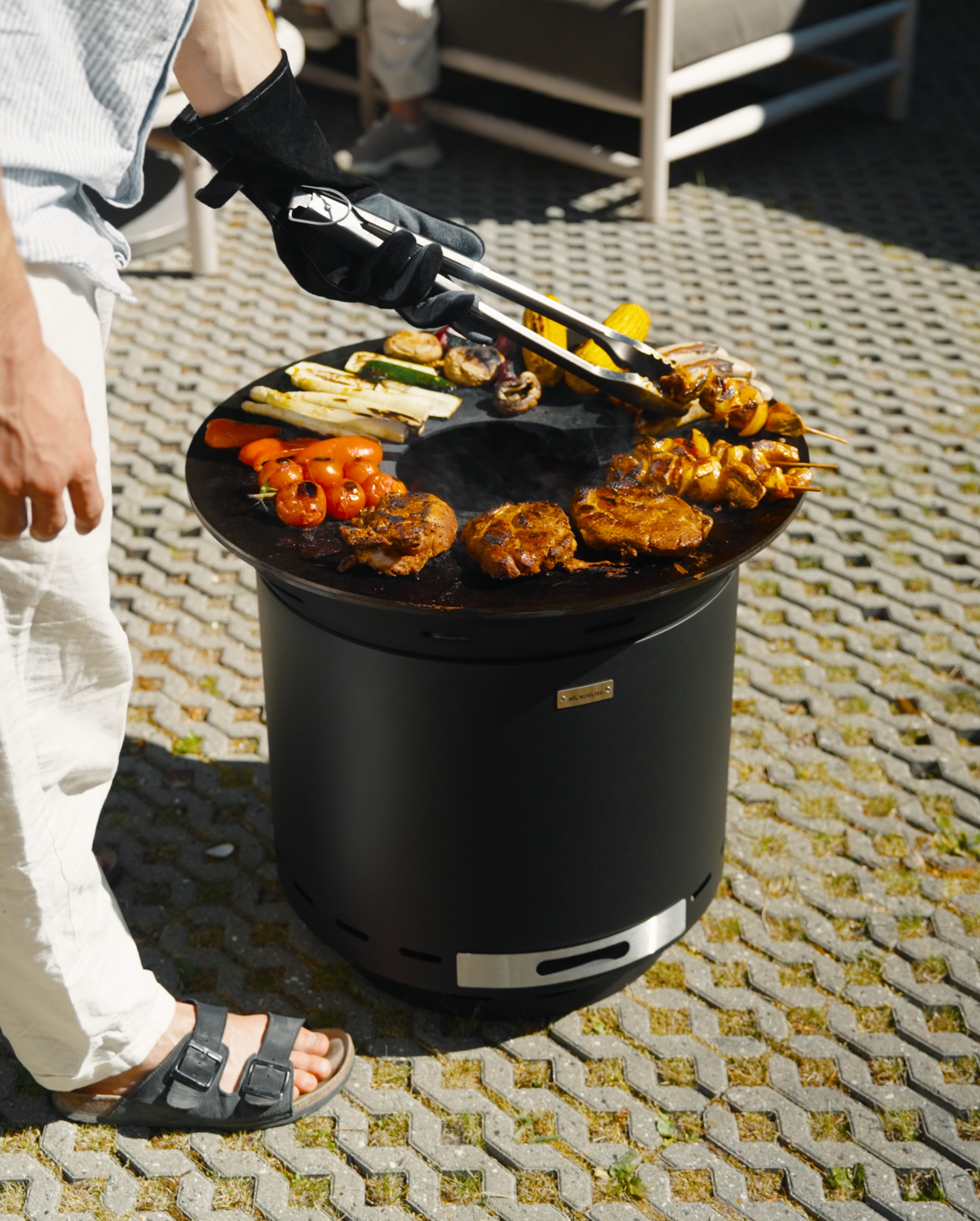 Okrągły talerz zachęca do wspólnego grillowania – niczym ognisko z funkcją gotowania.