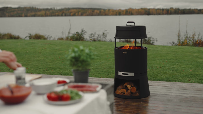 Bezpośrednie umieszczenie nad paleniskiem zapewnia intensywny, naturalny aromat drewna – jak w tradycyjnym piecu kamiennym.