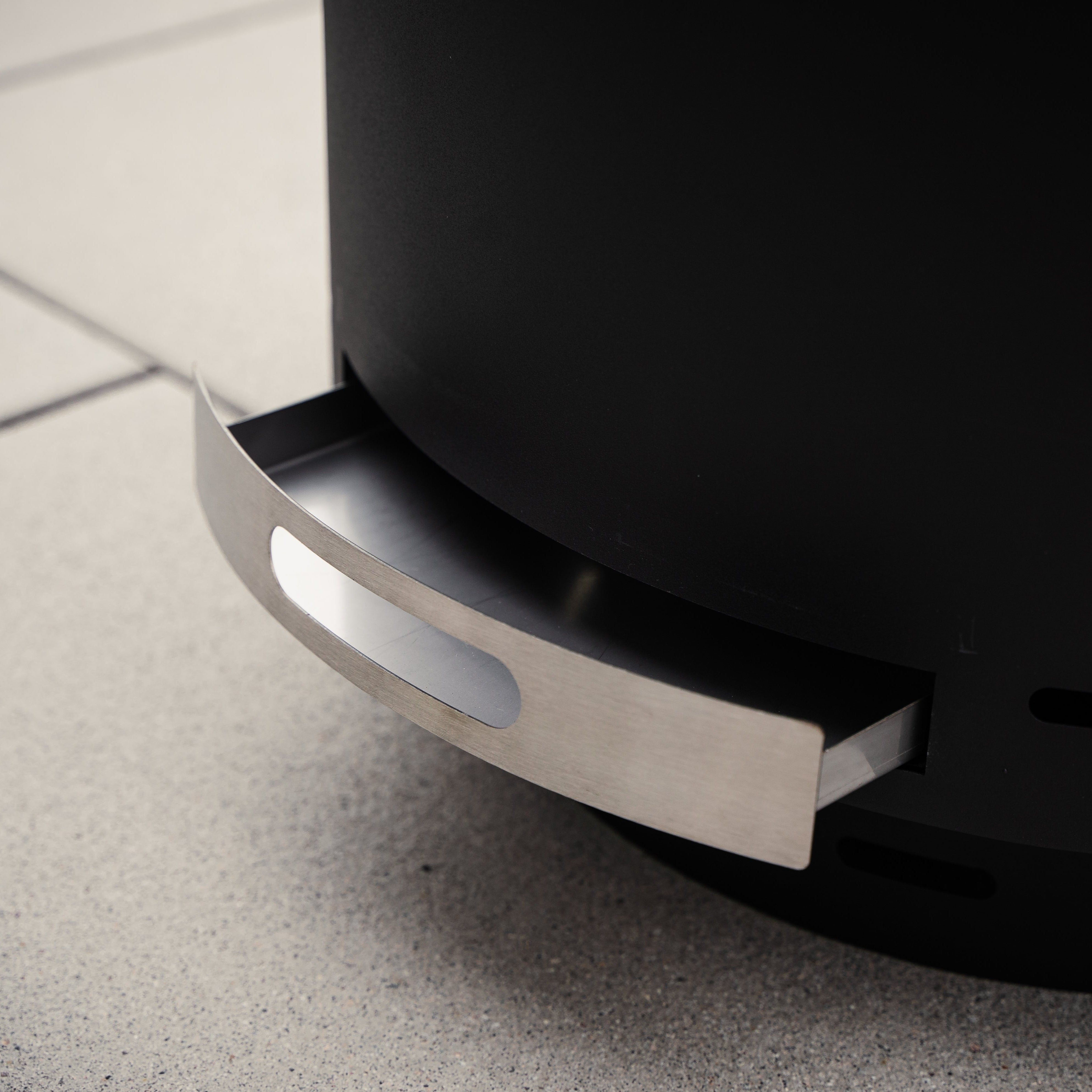 Pozostaw misę paleniskową do całkowitego ostygnięcia przed usunięciem popiołu. Regularnie opróżniaj popielnik i przecieraj wewnętrzną i zewnętrzną misę suchą lub lekko wilgotną szmatką. Unikaj ostrych środków czyszczących, aby uniknąć uszkodzenia powierzchni.